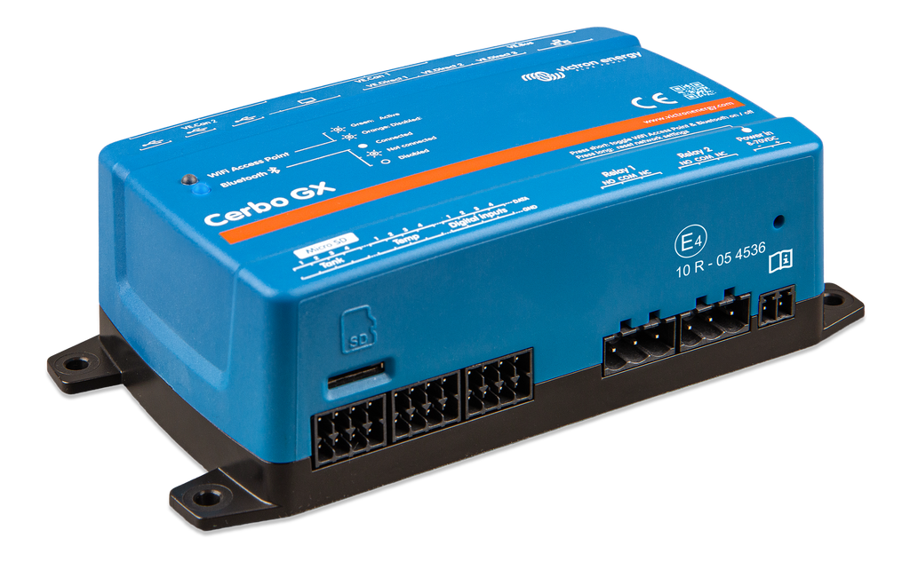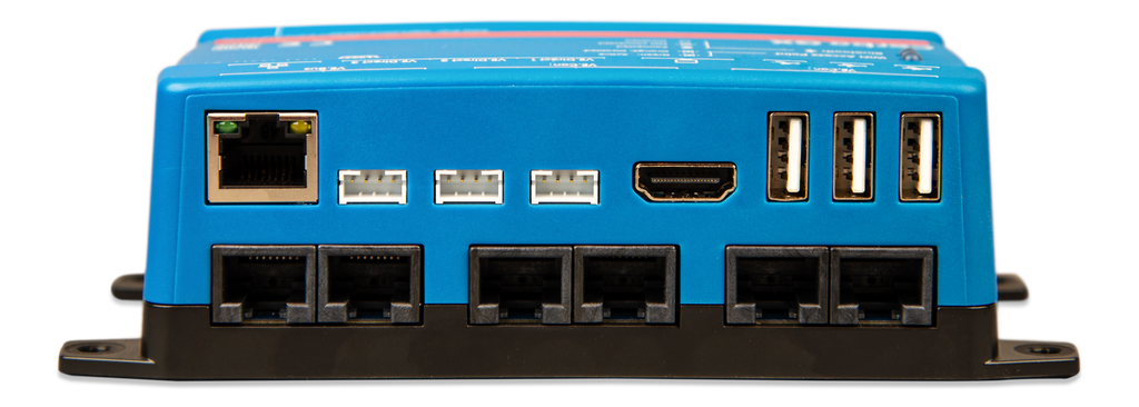The Cerbo GX enables you to monitor and control your system from anywhere, at any time. It is designed to be a versatile centerpiece that seamlessly connects to your other Victron connected products and supported third party devices. Master remote systems with real-time monitoring, historical analysis, remote access and control with the Victron Remote Monitoring (VRM) portal and VictronConnect app. Or simply connect a GX Touch display for direct control. With plenty of possibilities, the Cerbo GX puts the power in your hands.